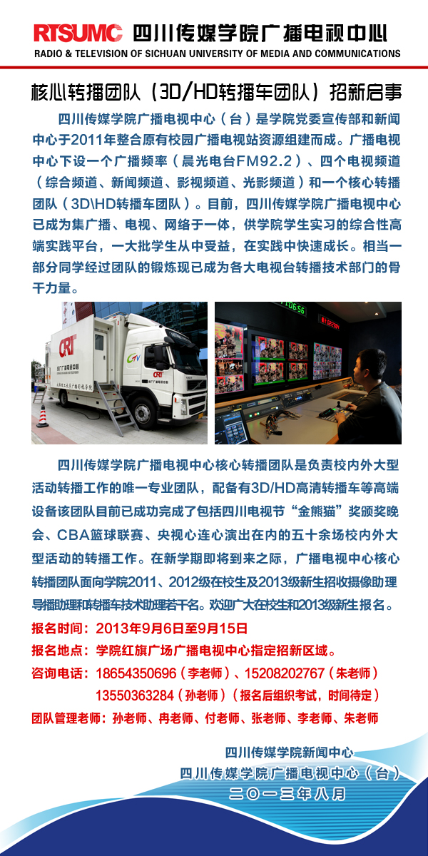学院广播电视中心核心转播团队(转播车团队)招新启事