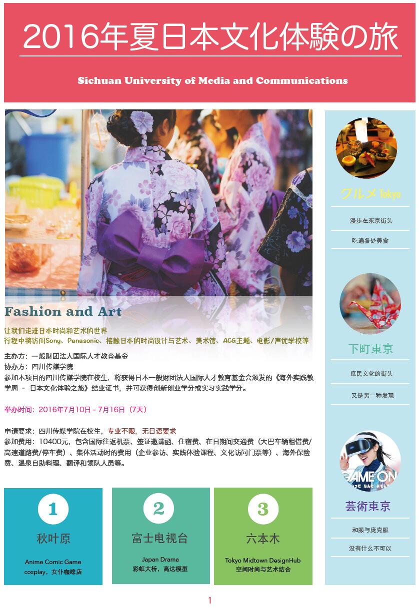 通过以下的企业访问、美术馆、专门学校等的参观体验,了解日本运用传统的理念、现代的元素和构成手法的设计风格与艺术感官,提升学生的自我艺术修养,浸入式感受日本文化。