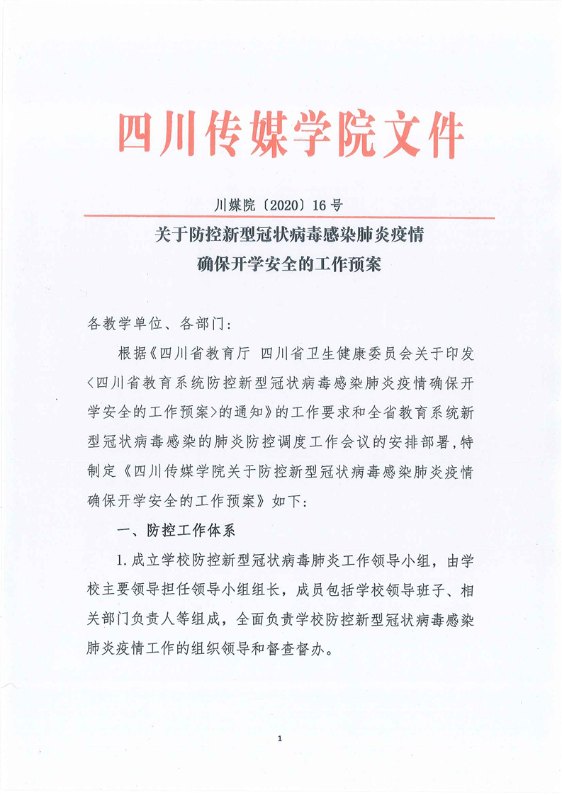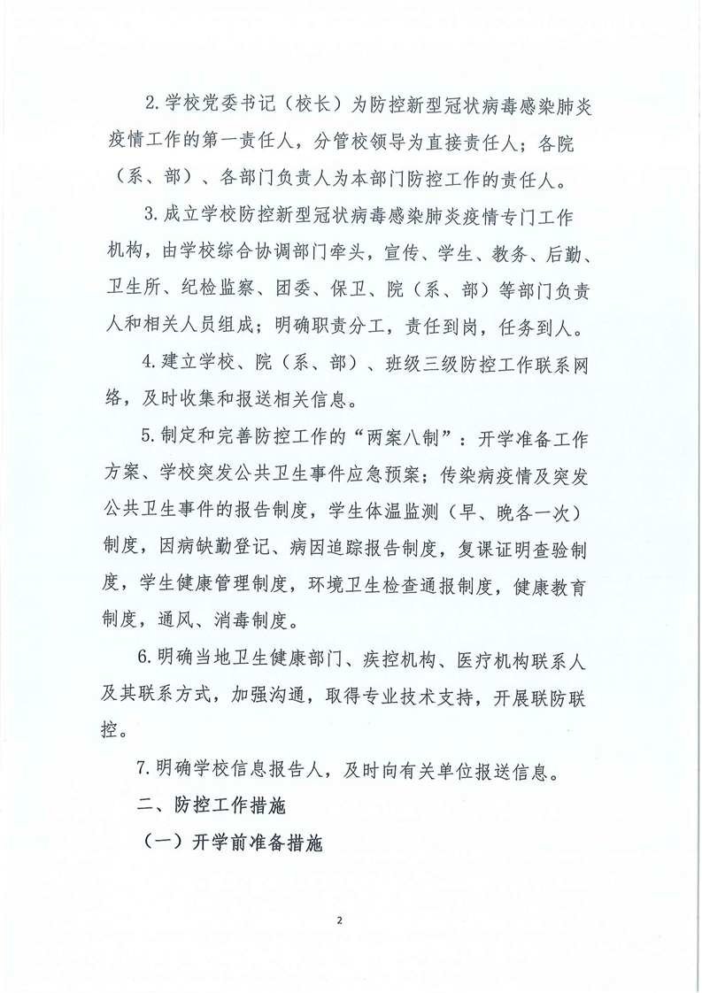 关于防控新型冠状病毒感染肺炎疫情确保开学安全的工作预案