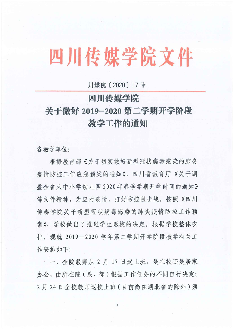 关于做好2019-2020学年第二学期开学阶段教学工作的通知