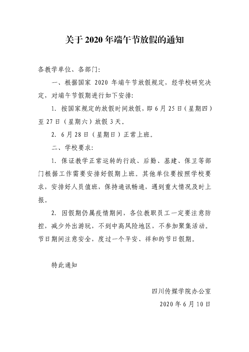 关于2020年端午节放假的通知