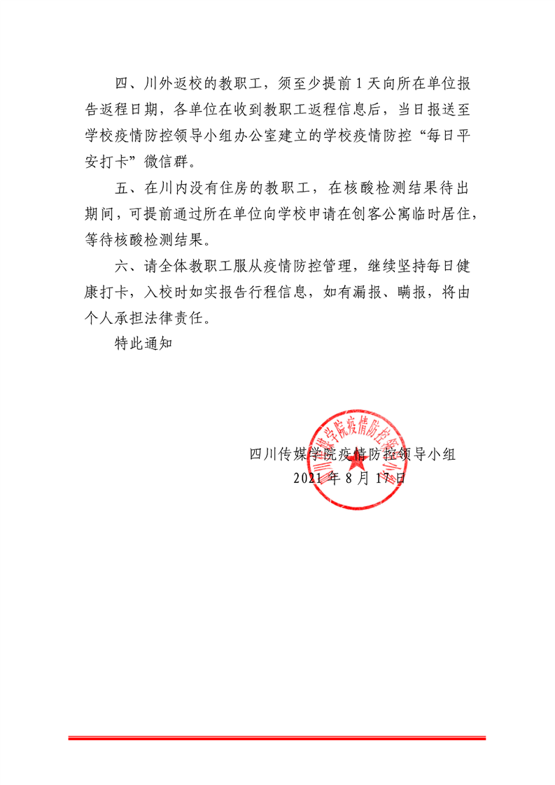 关于2021年秋季学期开学教职工返校返岗疫情防控有关工作的通知