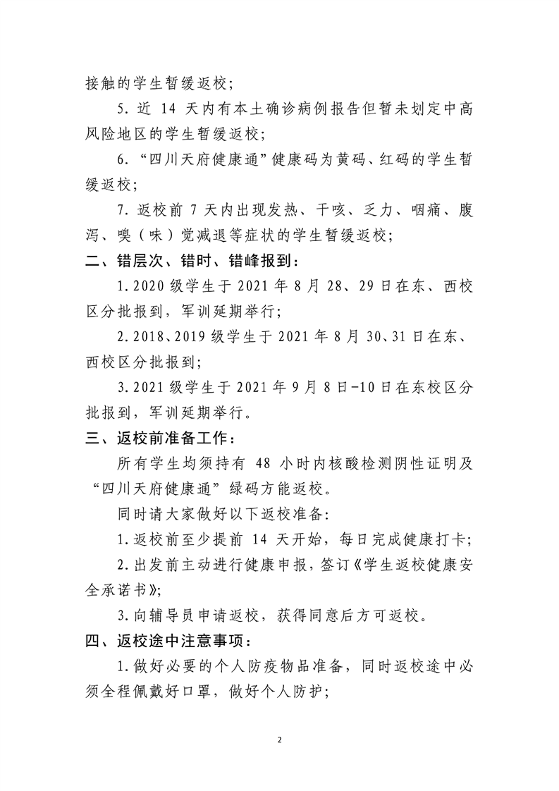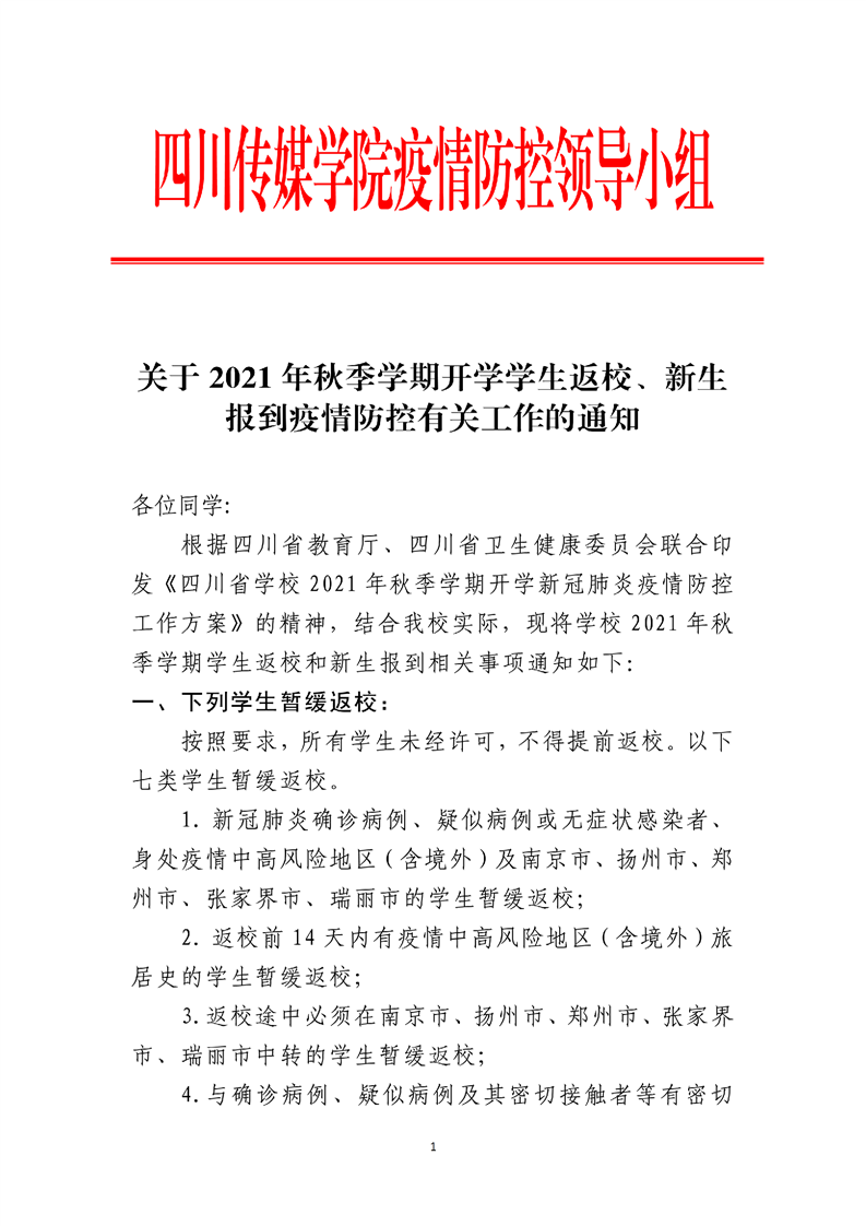 关于2021年秋季学期开学学生返校、新生报到疫情防控有关工作的通知