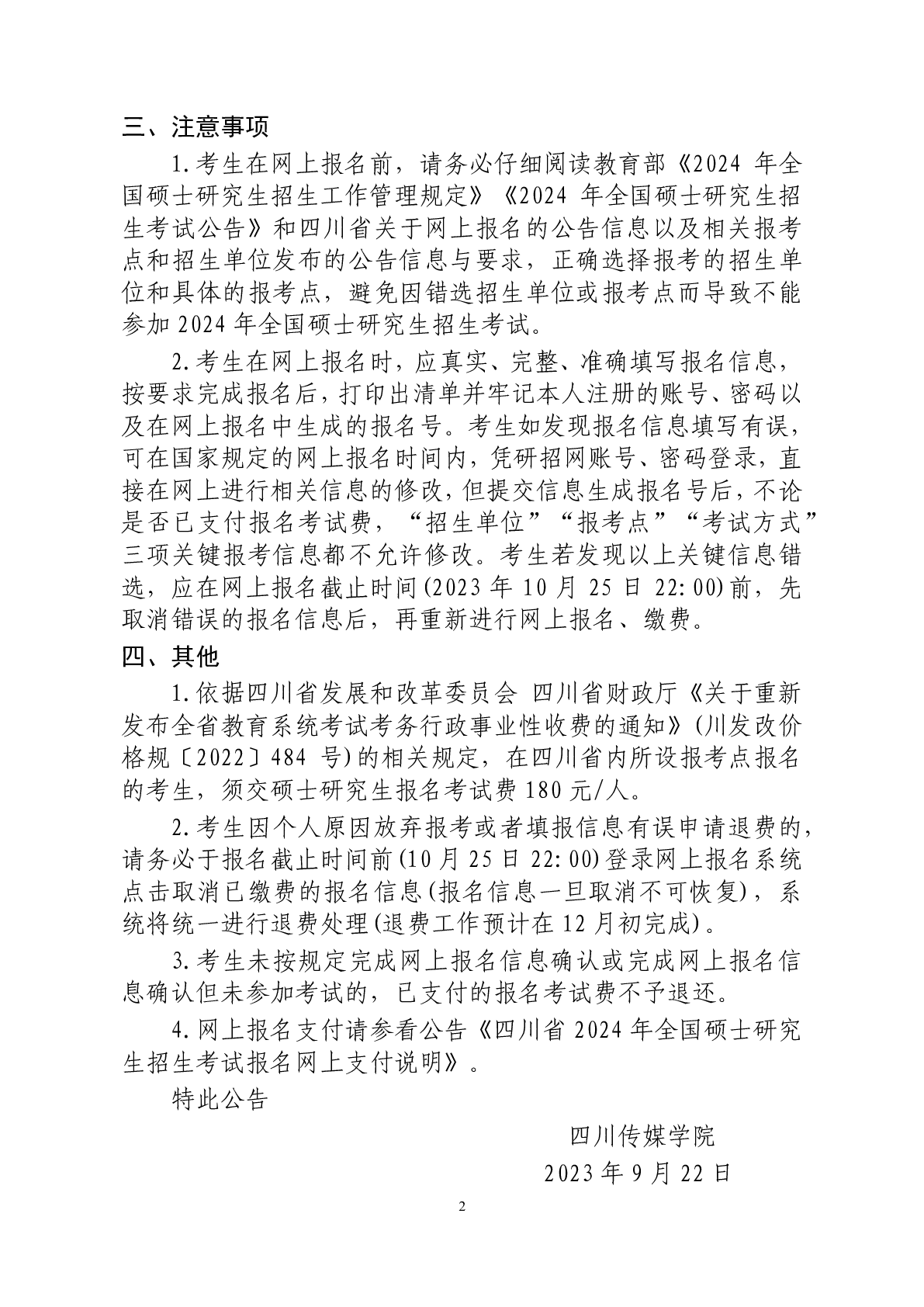 2024年全国硕士研究生招生考试四川传媒学院考点公告(一)