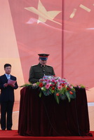 军训团副团长吴秦川就军训工作、作息时间、军训内容做了安排,并提出了几点要求,鼓励同学以饱满的热情积极参加训练。