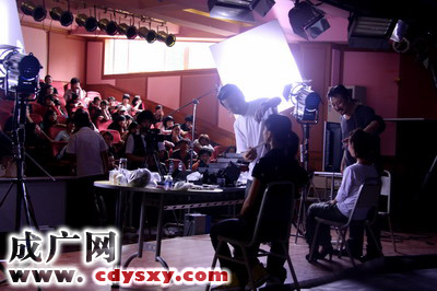 讲座之前,同学们先观看了由陈敏正先生担任主造型师的电视剧《闯关东》的人物造型集锦,之后又挑选了两名学生作为模特,现场为广大同学进行了人物造型演示。