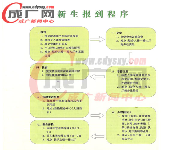 5、因特殊原因不能按时报到者,须及时向学院招办书面传真请假(传真号:028-87953006),报到截止后,无故逾期一周不到校注册者,不再保留入学资格。