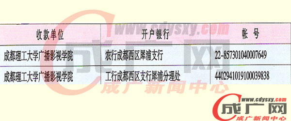7、相关交费项目详见录取通知书内附加的《成都理工大学广播影视学院2008级本、专科新生入学须知》。