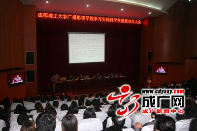 成广院深入学习实践科学发展观活动领导小组组长、学院党委书记、院长马洪奎在动员讲话中指出,科学发展观,是立足社会主义初级阶段基本国情,总结我国发展实践,借鉴国外发展经验,适应新的发展要求提出来的。他的第一要义是发展,核心是以人为本,基本要求是全面协调可持续,根本方法是统筹兼顾。马院长说,我院在办学中坚持科学发展观,经过十年拼搏,实现了超常规、跨越式发展。到目前,学院校园占地面积1000亩,是建校初期的25倍;教学、生活用房、学生公寓等建筑面积35万余平方米,是建校初期的40余倍 ;在校生人数l4500人 ,是建校时的120余倍。 从而赢得了教育主管部门和社会各界的认可。其知名度越来越高,受到广大考生和家长的青睐,招生一年比一年火爆。