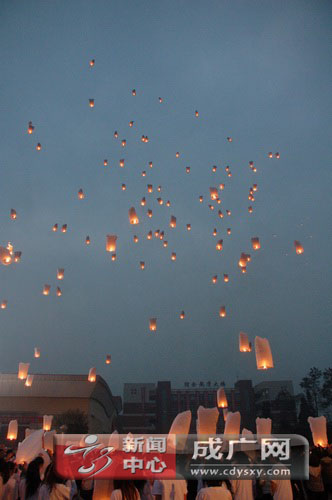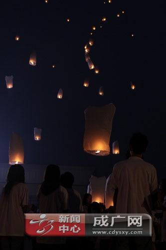 10月15日晚,上海世博会环幕电影组来我院进行影片取景,来自学院各系的百余名学生在学院灯光球场同放孔明灯。