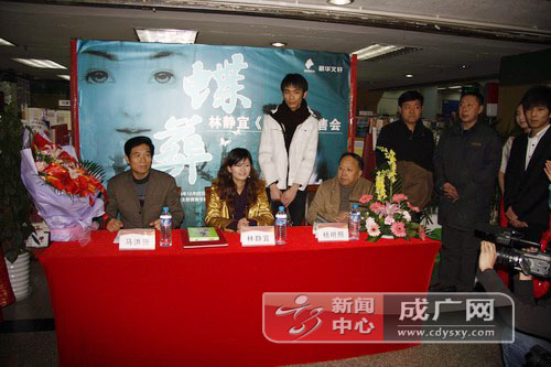 之后,林静宜和出版方领导也分别致辞。在之后的签售会上,所备书籍基本被抢购一空,场面十分火热。一位等待签售的读者向学院新闻中心表示他曾经读过林静宜的处女作品《逆时钟》,很喜欢她的写作风格,言语中流露出这位读者对《蝶葬》的期待。