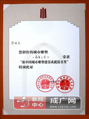 郑晓东教授获新中国城市雕塑建设成就提名奖