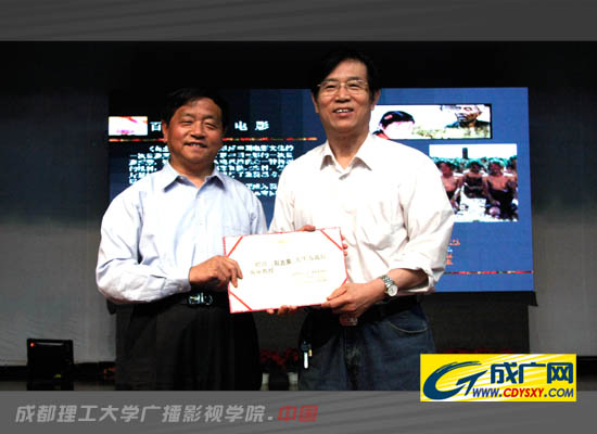 最后,马洪奎院长还向彭吉象教授颁发了成都理工大学广播影视学院客座教授的聘书。