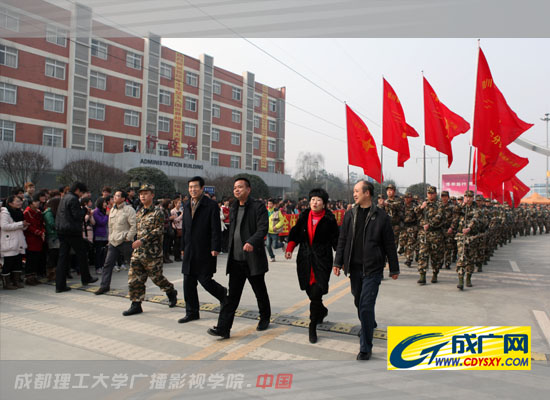 2月23日上午11点,四川省军事训练基地警安分基地的近百名军训官兵进驻学院,他们将对学院2010级5000余名学生进行为期十天的军事训练。学院领导马洪奎、张书玉,学院军训工作领导小组成员在校大门迎接军训官兵进驻学院,学院党委书记、院长马洪奎代表全院师生对全体军训官兵的到来表示欢迎,他希望广大军训官兵在成广的军训工作圆满顺利。