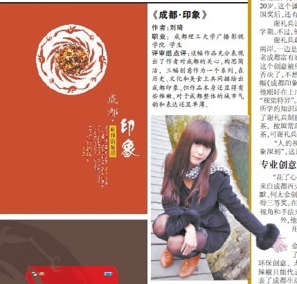 近日,《成都商报》为感恩成都,投入100万元重金征集成都元素及成都城市形象广告创意,并将投入1000万元在全国36个城市的37家主流媒体推出成都城市形象广告。我院艺术设计与动画系刘琦获和谢礼兵两名学生的作品在众多征集作品中脱颖而出,获得三等奖和入围奖,并获得由《成都商报》奖给的4万元奖金。据这两名学生的指导老师介绍,两名学生的成都形象元素设计城市形象平面广告贴近成都特色,主题深入人心,作品令人过目不忘,都能有效宣传成都城市形象。