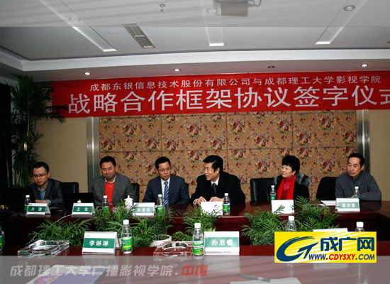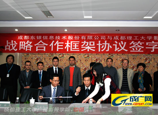 3月14日下午,成都理工大学广播影视学院与成都东银信息技术股份有限公司合作签约仪式在成都东银信息技术股份有限公司举行。成都理工大学广播影视学院党委书记、院长马洪奎,副院长张书玉、董孝璧,成都东银信息技术股份有限公司(以下简称东银公司)董事长张建强,总经理王俭,副总经理孙潇等参加签约仪式。