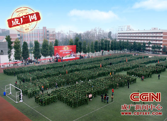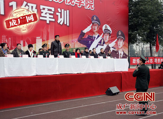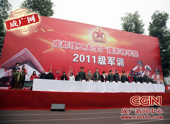 2月16日上午9点,成都理工大学广播影视学院2011级学生军训开训典礼在学院运动场举行。学院领导马洪奎、张书玉、薛莉华、陈祖继、王雷、黄莓子、董孝璧、康庆良,四川省军区学生军训工作办公室主任谢辉容、四川警安学生军训分基地主任马小红,学院各系各部门负责人出席开训仪式。