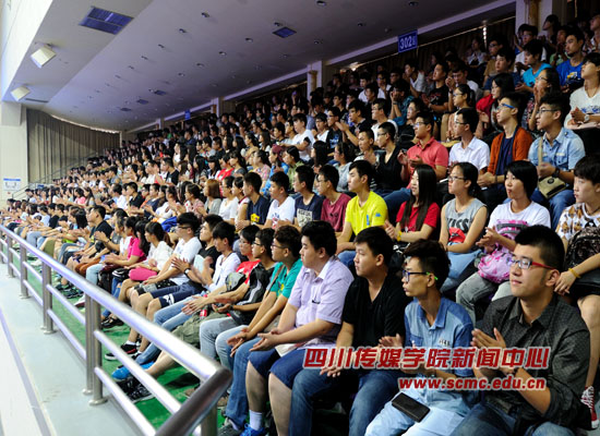 四川传媒学院广播电视中心转播团队对上午的大会进行了现场直播,除了5000余名新生在艺体中心一号演播厅参会以外,其余1000余名新生分别在大演播厅和艺术交流中心分会场观看视频直播。(浩睿)