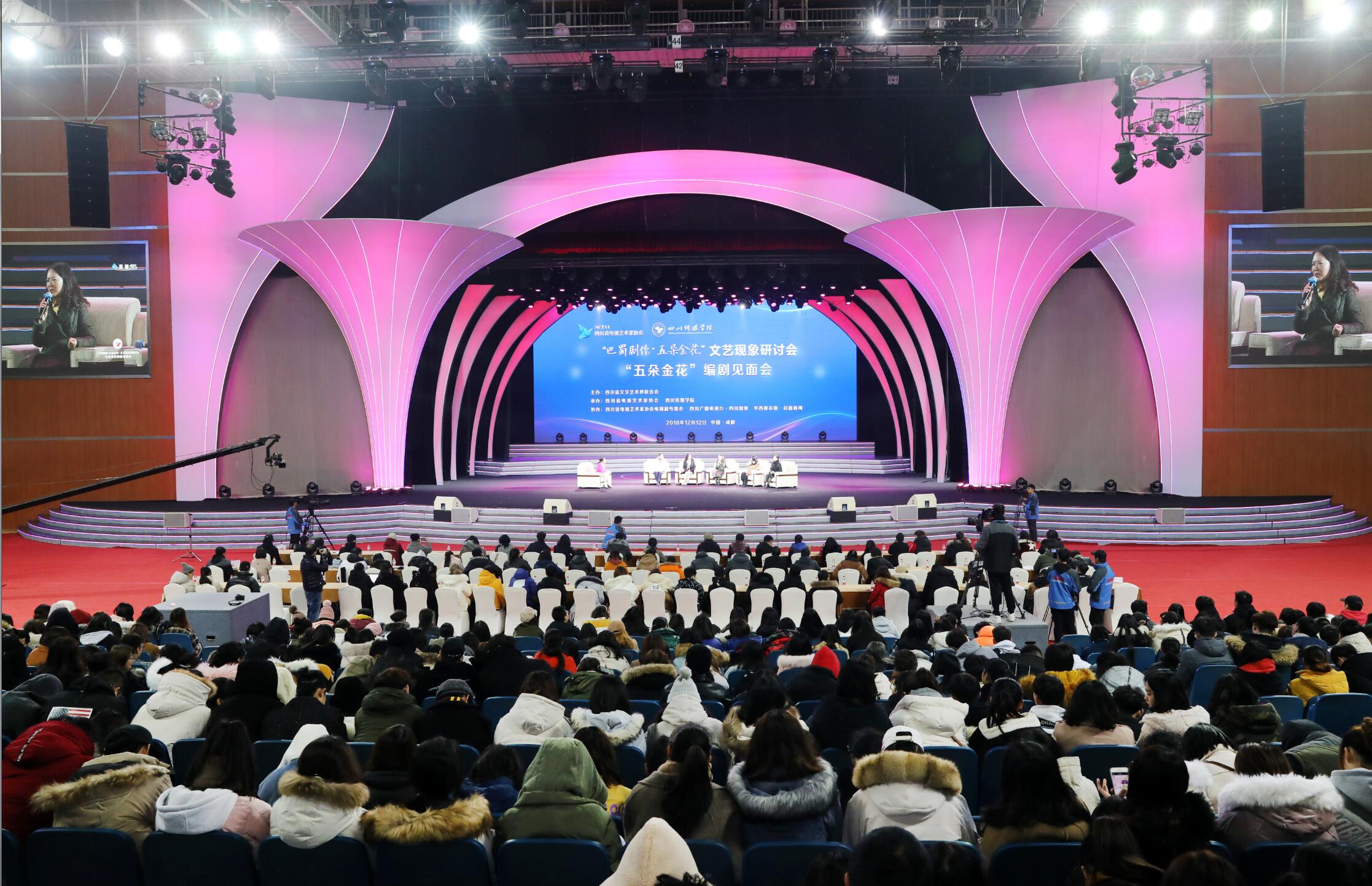 为认真学习、深入贯彻习近平总书记关于文艺工作者要“坚定文化自信,用文艺振奋民族精神”等系列重要讲话精神,加强我省青年编剧人才培养力度,繁荣戏剧影视创作,由四川省文学艺术界联合会主办,四川省电视艺术家协会、四川传媒学院承办,四川省视协电视剧专委会、四川广播电视台·四川观察、华西都市报·封面新闻协办的“‘巴蜀剧作·五朵金花’文艺现象研讨会”于2018年12月12日上午在四川传媒学院举行。