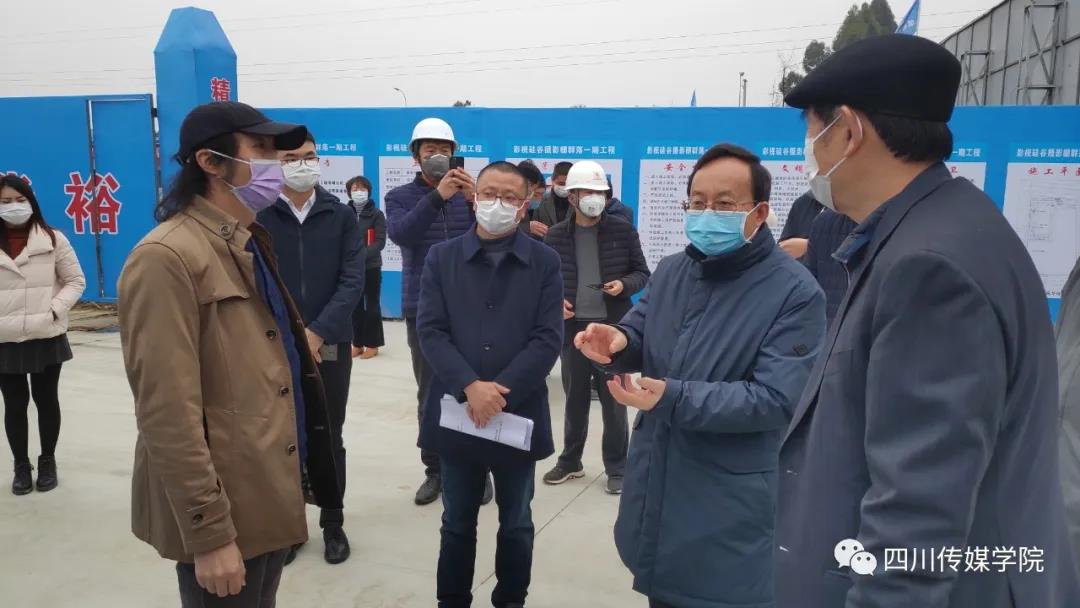 2月22日至28日期间,四川省委宣传部副部长、省广电局李酌局长以及一级巡视员黎万恒,成都市人民政府副市长刘旭光,郫都区区委书记杨东升、四川传媒学院党委书记、校长马洪奎等领导分别到项目施工现场查看施工情况,慰问项目施工人员。他们强调疫情期间一定要严格按照省市区防疫工作的要求进行作业,保证充足的防疫物资储备,在保证安全的前提下,加快推动摄影棚群落建设。