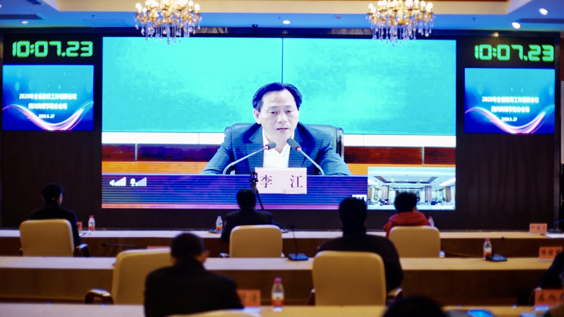 3月27日上午9:00,2020年全省教育工作视频会召开。省委教育工委书记,教育厅党组书记、厅长李江,省委教育工委副书记、教育厅党组成员李光华,省委教育工委委员,教育厅党组成员、副厅长戴作安等出席。大会宣读了四川省委常委甘霖,省人民政府副省长杨兴平的批示。李江厅长在会议上讲话。全省各地市州教育主管部门、高等院校在各分会场参会。