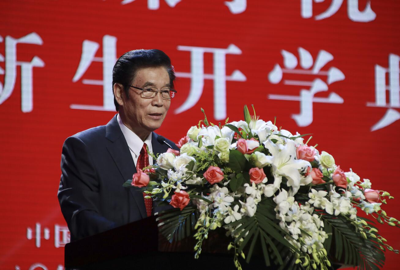 全场齐唱国歌后,校党委书记、校长马洪奎发表讲话。他代表学校党政领导和全体师生,对新同学的到来表示热烈地欢迎。
