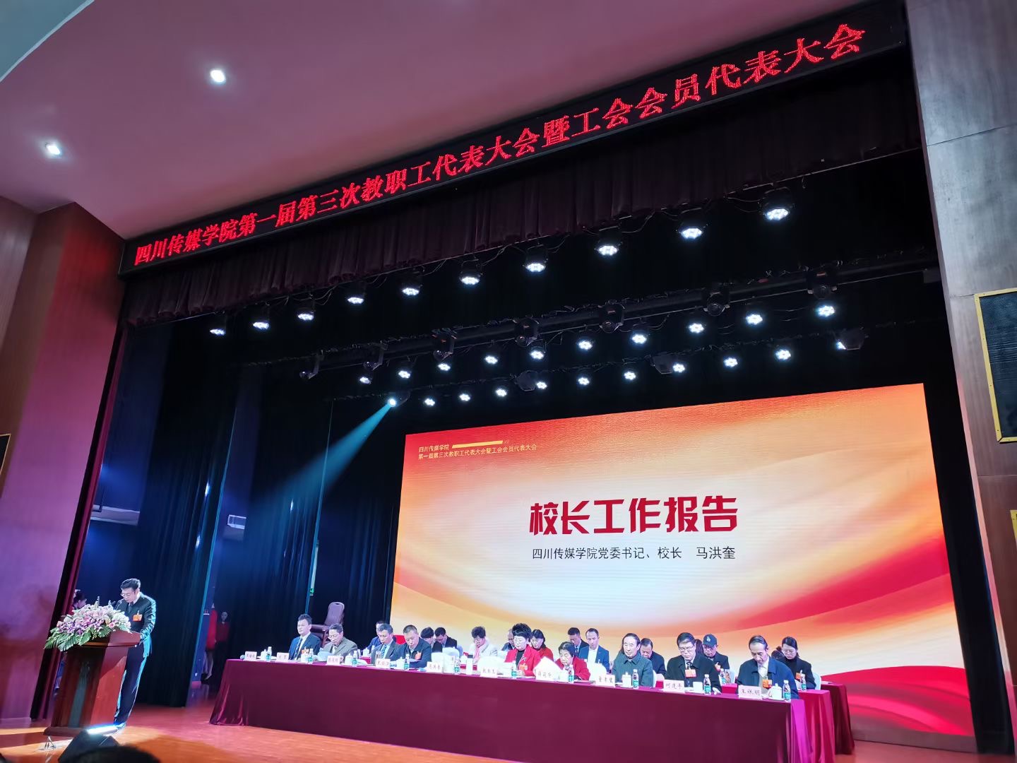 10月24日上午,四川传媒学院学院第一届第三次教职工代表大会暨工会会员代表大会在艺术交流中心召开。