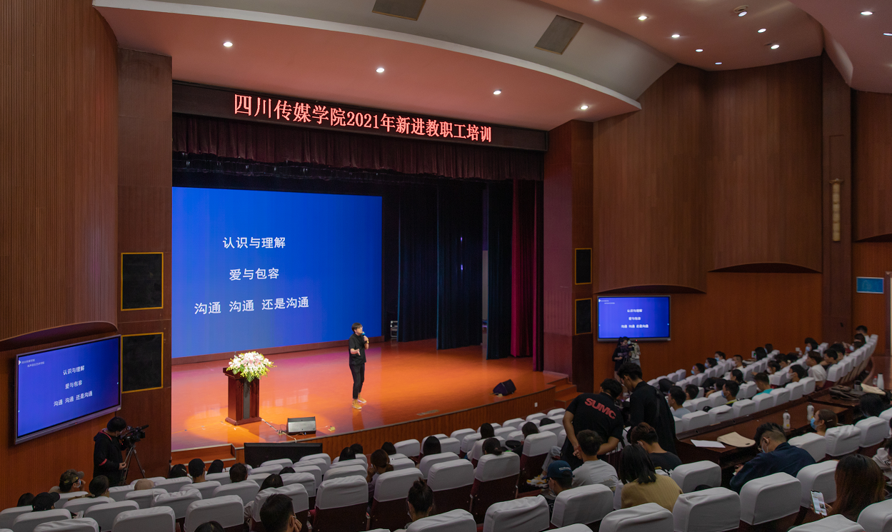 教务处处长陈国英、人事处处长王贤清、科研处处长陈锦宣分别就有关工作提出要求。智慧广电学院副院长、优秀示范课教师李津舟结合自身的实际经验就如何做好产教融合型教师团队向广大新进老师作了介绍;有声语言艺术学院双语播音专业主任、四川省外语思政大赛特等奖获得者孙雨竹则分享了关于学生心理、师生沟通和课堂思政的有关内容。