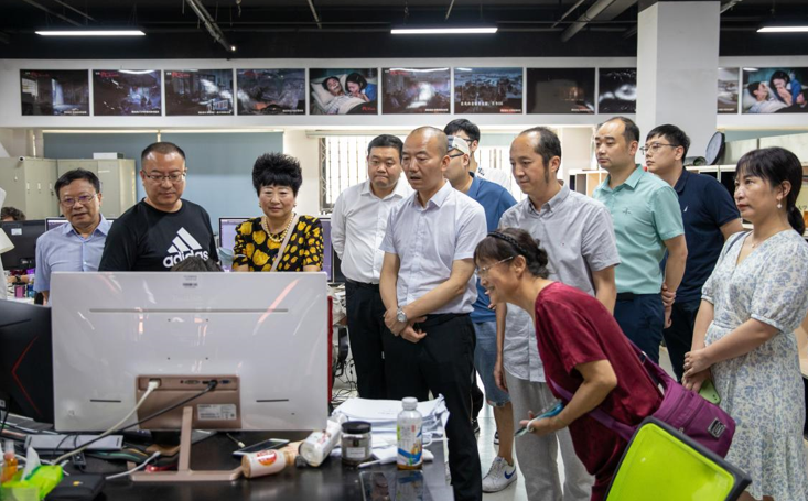 签约仪式结束后,王龙一行先后考察了学校视听中心某电视剧拍摄现场、川传影视硅谷摄影制作基地数字化大摄影棚、国家级超高清基地成果展示厅等地,实地了解四川传媒学院教学实践和作品创作情况。