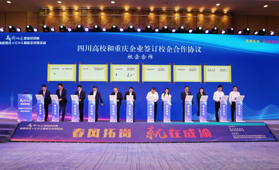 4月3日,在成渝地区双城经济圈高校联合访企拓岗暨校企对接活动中,四川传媒学院邀请了重庆广播教育学校、重庆青年报社、多点期待文化传播有限公司、富淞文化科技集团有限公司、重庆远景装饰工程有限公司等多家企业参加活动。重庆市教育委员会、四川省教育厅相关领导分别讲话。会议强调,要充分发挥成渝双城经济圈优势,把高校毕业生就业工作放在突出位置,加力推进访企拓岗工作,加大成渝两地校企对接力度,切实推进成渝两地毕业生高质量就业。