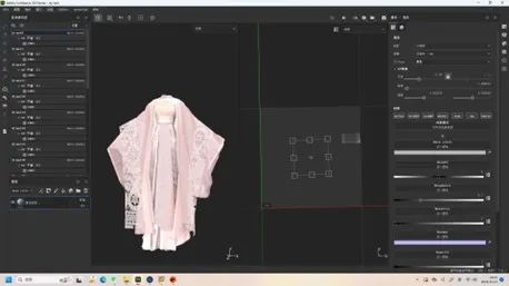 团队分工明确且高效的执行力是保障项目顺利完成的关键。杨淯焜老师以主美视角完成前期的屏幕定稿设计和国风感的裸眼3D场景,罗娜同学和张涛同学主力完成裸眼3D人物面部表情和布料的制作,罗娜同学主力承担人物的衣服和材质制作,谢文钰老师指导学生们进行绑定。同学之间,师生之间的积极沟通,即使在制作过程中遇到一些问题,也能通过分工与合力有效解决。