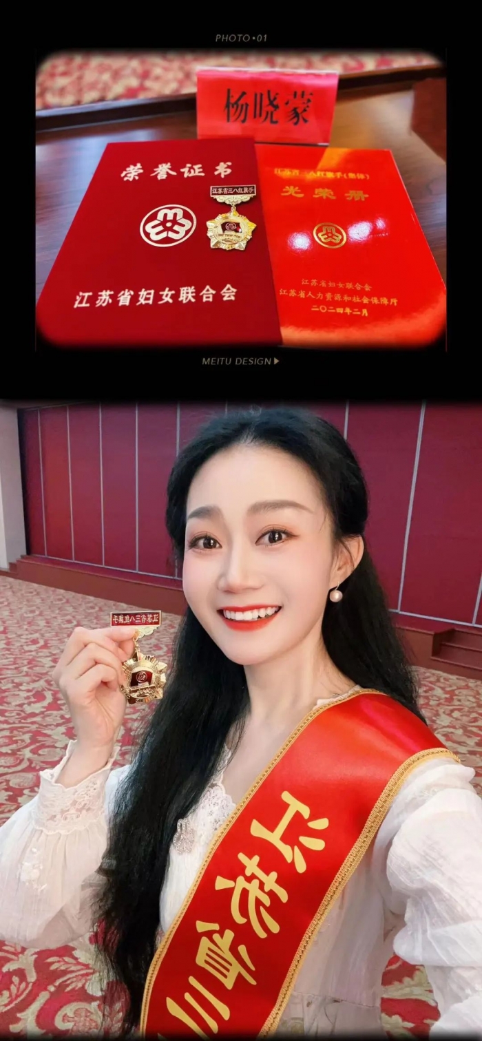 三月春燃,阳光和煦,继2023年荣获江苏省“五四青年奖章”后表演学院优秀校友杨晓蒙再摘殊荣。被江苏省妇女联合会、江苏省人力资源和社会保障厅授予“江苏省三八红旗手”荣誉称号。