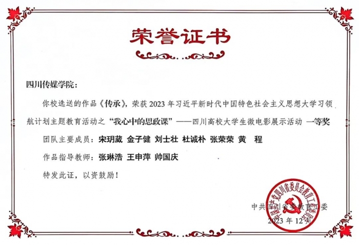 “我心中的思政课”——2023年四川高校大学生微电影作品四川传媒学院作品获奖情况