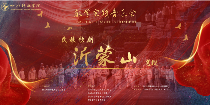 为推动艺术实践教学,唱响红色经典,并致力于提升学生多学科融合能力,音乐与录音艺术学院音乐系于2024年5月23日晚7:30,在大型演播厅成功举办了一场震撼人心的大型民族歌剧《沂蒙山》选段教学实践音乐会。此次活动由音录学院院长苏国明教授亲自操刀,担任艺术总监及总导演,汇聚了学院内外众多优秀师资力量。