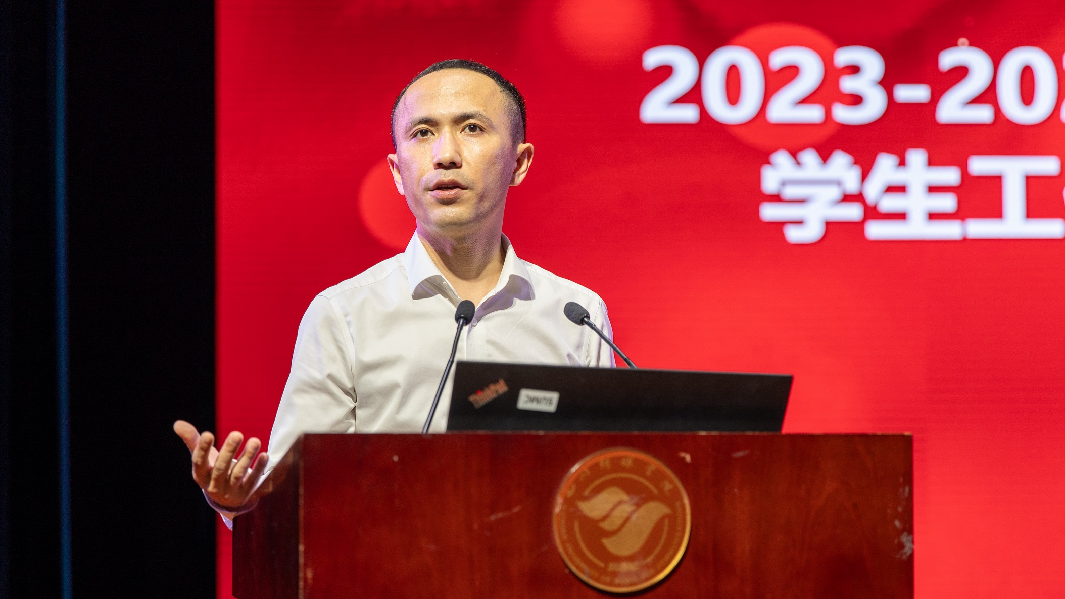 随后,15个院系部的党委书记逐一上台,对本学期的工作进行了详细的总结。他们的总结内容既全面又深入,不仅涵盖了党建与思想政治引领、学风建设、校园文化活动开展等方面的工作亮点和成果,还深刻剖析了存在的问题和不足,并提出了切实可行的改进措施和未来发展思路。这些总结充分展示了各院系部在学生工作方面的扎实基础和创新能力。