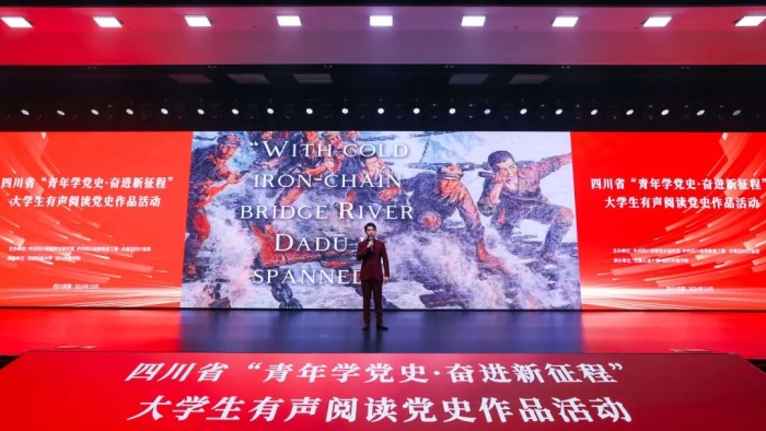 荣凌在讲话中指出,四川百年党史记录着中国共产党在四川的艰辛历程和光辉业绩,蕴含着丰富的精神养料和育人素材。挖掘运用四川百年党史这座富矿,策划开展大学生有声阅读党史作品活动是深化党史学习教育的务实举措,是传承弘扬红色基因的有效载体,是构建大党史工作格局的现实需要。青年大学生要理清楚为什么要学党的历史、从党的历史中学什么、怎么学习党的历史等问题,注重从百年党史这部丰厚的教科书中汲取前行的智慧和力量,做走在时代前列的奋进者、开拓者、奉献者,书写“请党放心,强国有我”的青春华章。荣凌要求,要发挥思政课堂关键作用,采取更加有效的措施,运用更加创新的方式方法,将党史学习教育有机融入思想政治教育学科体系、教材体系和课程体系,不断取得铸魂育人的良好效果。