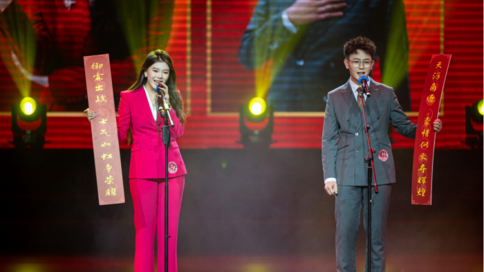 有声语言艺术学院专业教师赵羚淞(右3)和同学同台主持