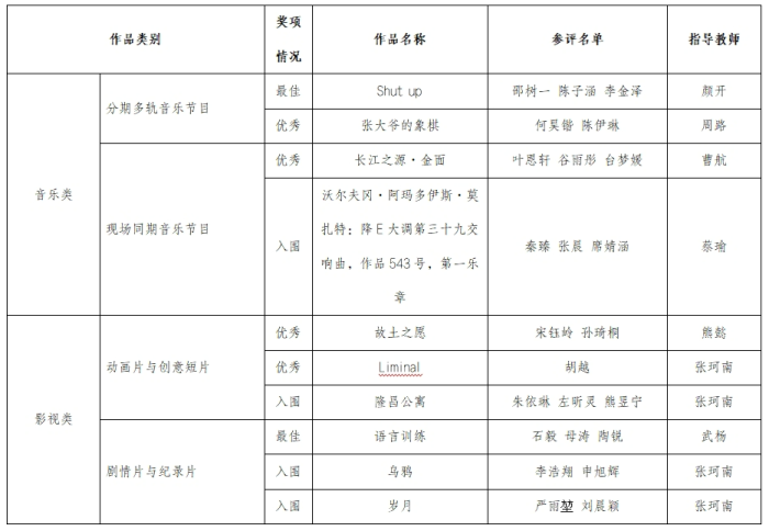 接着,中国电影电视技术学会常务副理事长钱岳林先生上台致辞,他对与会嘉宾表示热烈欢迎与衷心感谢,并强调要延续科技创新的主旋律,顺应改革大趋势,共同探索声音的美好未来。颁奖典礼于12月1日下午4时在四川传媒学院西区学术报告厅隆重举行。本届“声音学院作品交流”活动自启动以来,得到了全国高校声音类专业师生的积极响应,共征集到来自北京电影学院、中国传媒大学、上海音乐学院、南京艺术学院、浙江传媒学院、四川传媒学院等33所高校的197部优秀作品。其中,影视类剧情片与纪录片56部,影视类动画片与创意短片37部,音乐类现场同期音乐节目66部,音乐类分期多轨音乐节目38部。与去年相比,参与高校数量增长了30%以上,报送作品总数更是增加了50%以上。我校在本届赛事中共参报16部作品,并荣获10项奖项。其中,获得两项最佳作品奖,四项优秀作品奖,四项入围作品奖;同时,七位老师荣获优秀指导教师奖;我校还荣获了优秀组织院校奖。