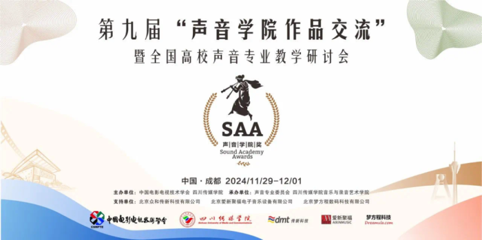 中国电影电视技术学会第九届“声音学院作品交流”暨全国高校声音专业教学研讨会已圆满落幕。此次活动不仅展示了高校声音专业师生的创作成果,让我们感受到了声音艺术的无限魅力,还通过学术交流与实践分享,深化了对声音教育与行业发展的理解。四川传媒学院音乐与录音艺术学院将汲取各方经验,继续践行实践育人理念,为录音艺术专业的发展贡献力量。“声音学院作品交流”活动是由国家一级学会中国电影电视技术学会于2015年设立的、面向全国高等院校声音相关专业师生的影视声音与音乐制作类交流活动。活动坚持推介高质量的学生作品,举办专业性讲座及实践类工作坊,召开专业教学研讨会,有力地促进了高校声音类专业师生之间、学界和业界之间的交流,成为推动实践教学发展、促进声音相关学科建设、传播行业前沿资讯、展示最新创作成果的优质平台。