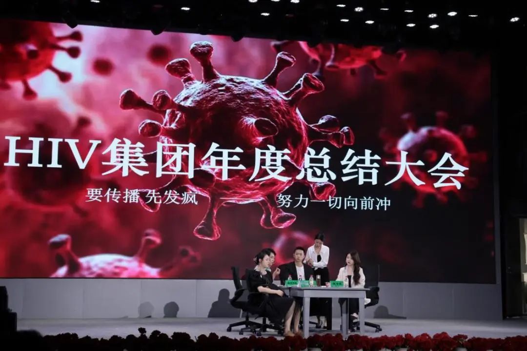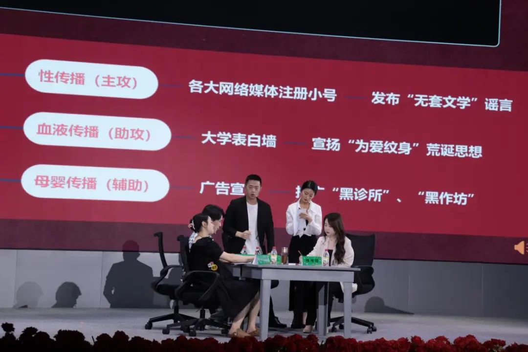 学生团队“H集团”由融合媒体学院2022级广播电视学专业学生秦启智、程佳艺、丁诗会、颜恩玮和2023级数字出版专业学生陈又渝组成。他们匠心独具,将HIV病毒拟人化为“传播集团”,以生动的角色对话,科普“性、血液、母婴”三大传播途径的风险。作品融合网络热梗和地区方言,通过幽默的剧本设计与强烈的舞台戏剧冲突,在引人入胜的剧情中,使观众直观理解艾滋病传播机制与防控要点,实现了防艾知识在年轻人群体中的有效普及。