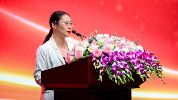 ▲优秀教师代表张晓黎交流发言。 刘彧珂摄