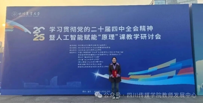 11月28-30日,在中共四川省教育工委、四川省教育厅指导,四川省高校“马克思主义基本原理”教学研究会主办,全国高校思政课“手拉手”集体备课中心(四川大学)等7个单位承办的学习贯彻党的二十届四中全会精神暨人工智能赋能“原理”课教学研讨会2025年年会教学竞赛揭晓,马克思主义学院青年教师周洁以《快与慢的辩证法:从生活褶皱里打捞矛盾观》为题,荣获二等奖。