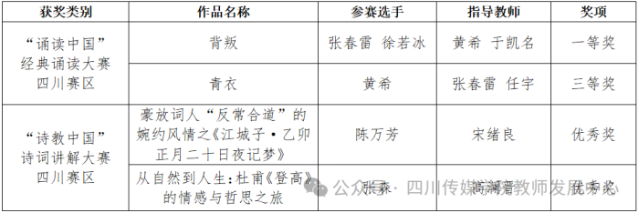 四川传媒学院教师多项赛事获佳绩