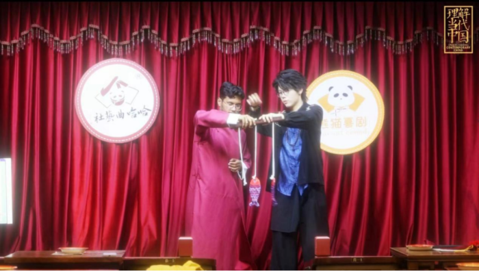 作品由有声语言艺术学院教师孙雨竹、茹娜和外国语部教师邹焱昌联合执导。创作者们将镜头对准了国家级非物质文化遗产——古彩戏法。创作初衷源于一份文化传播的责任:“‘美丽中国’不仅在于山河风光,更在于历经岁月沉淀的文化瑰宝。我们希望搭建一座桥梁,让古彩戏法走出国门,让世界感受这份东方的神奇与匠心。”学生团队说。