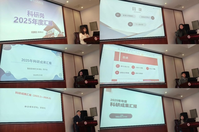 会上,来自多个学院的教师代表依次汇报了阶段科研成果及下一步研究计划。成果内容涵盖传统文化数字化传播、AIGC赋能影像叙事、川剧传承与创新、影视内容国际传播等多个前沿方向。教师团队在学科竞赛、科研项目、论文发表等方面均取得积极进展。整体成果体现出层次丰富、覆盖面广的特点。