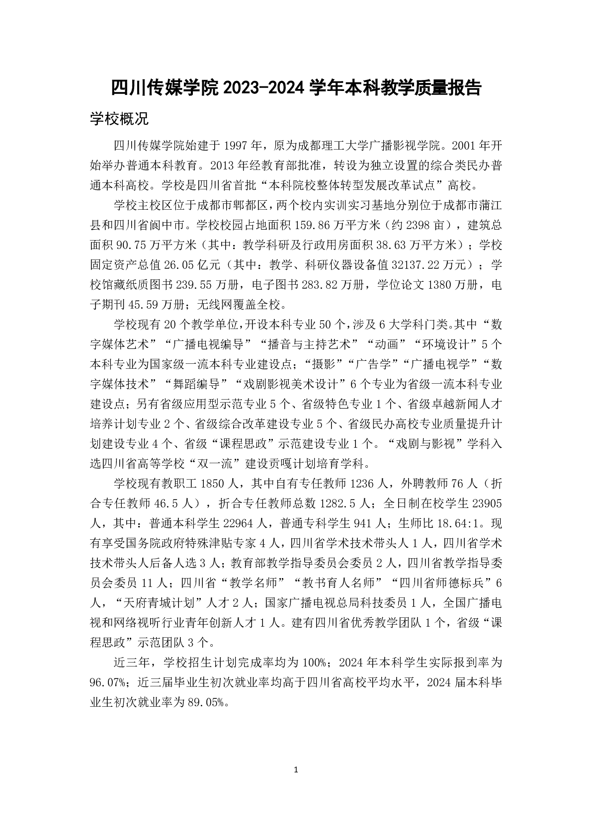四川传媒学院2023—2024学年本科教学质量报告